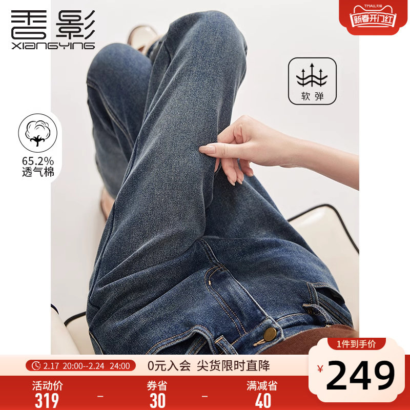 【水洗高色牢】香影牛仔裤女裤春秋复古蓝色老爹裤直筒裤显瘦裤子