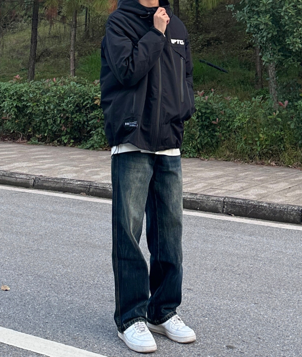 秋冬美式深色复古牛仔裤子男宽松直筒百搭显瘦水洗做旧黄泥染阔潮