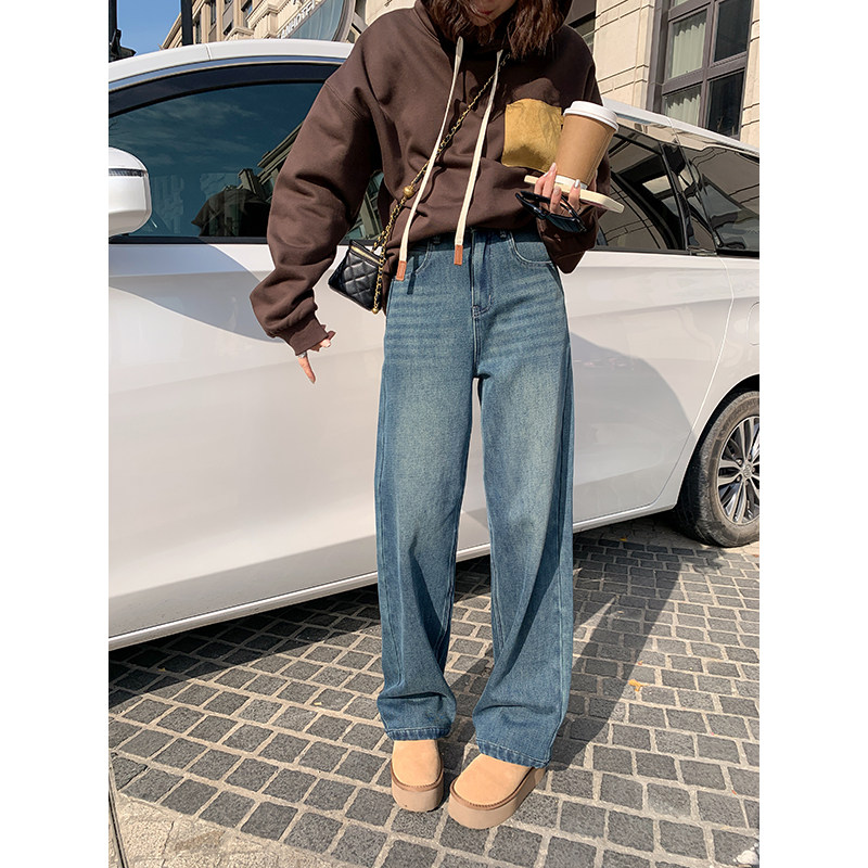 现eihey诶嘿金艺琳yeri同款直筒中腰宽松显瘦休闲牛仔长裤阔腿裤