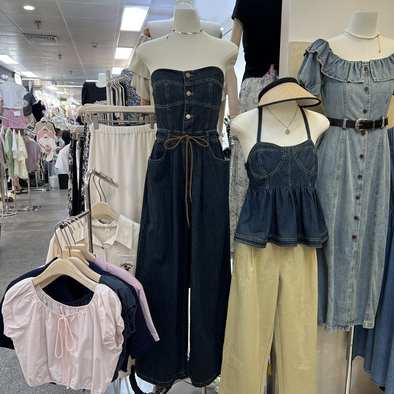 高级感气质牛仔吊带连体裤女夏薄款2023新款名媛阔腿裤抹胸背带裤