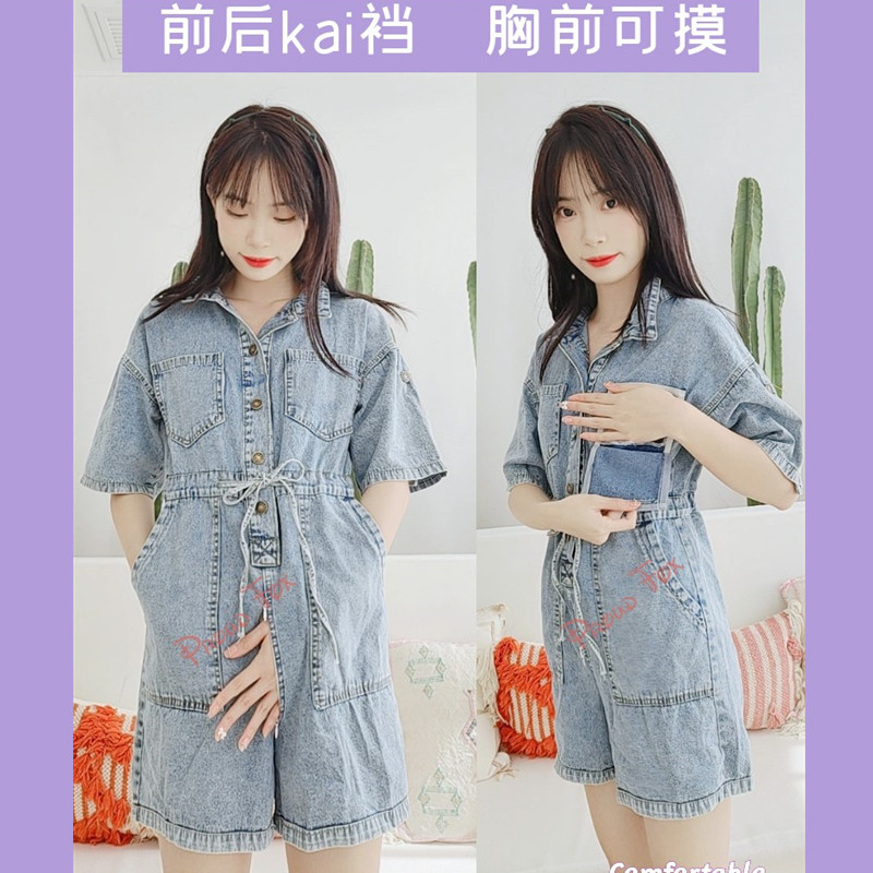 她秘proudfox情侣约会方便户外露出心机女裤子走光牛仔连体裤春夏