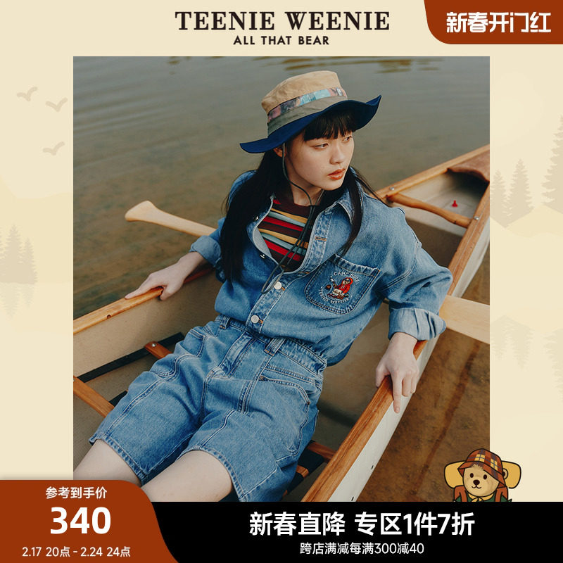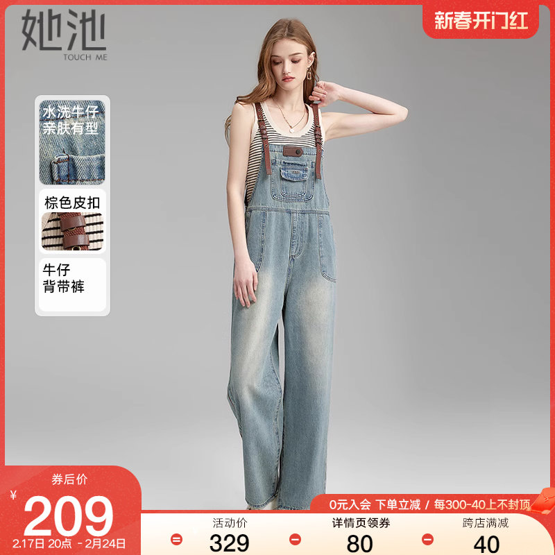 她池背带牛仔裤2024春装新款女装时尚减龄宽松显瘦翻边休闲连体裤