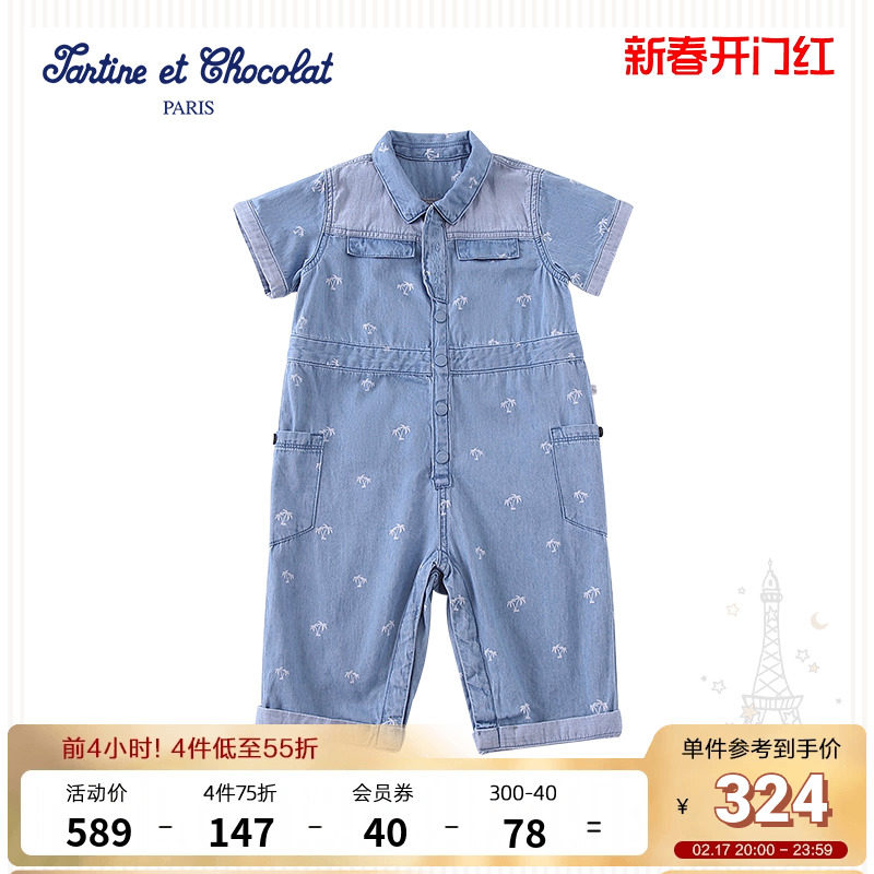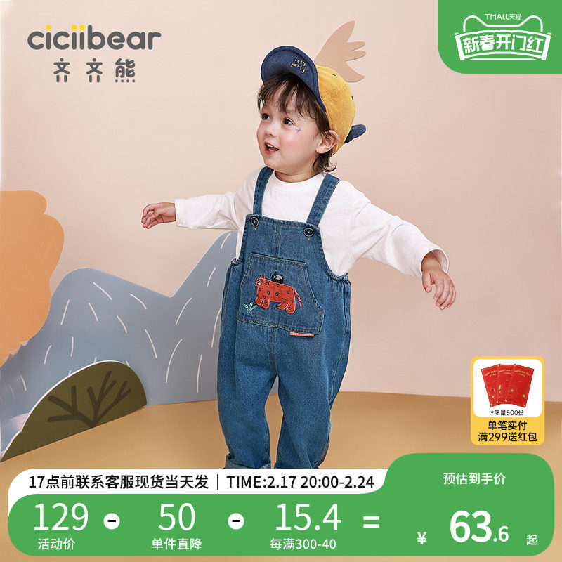 【丛林派对系列】齐齐熊宝宝背带裤春秋婴儿连体休闲裤男童牛仔裤