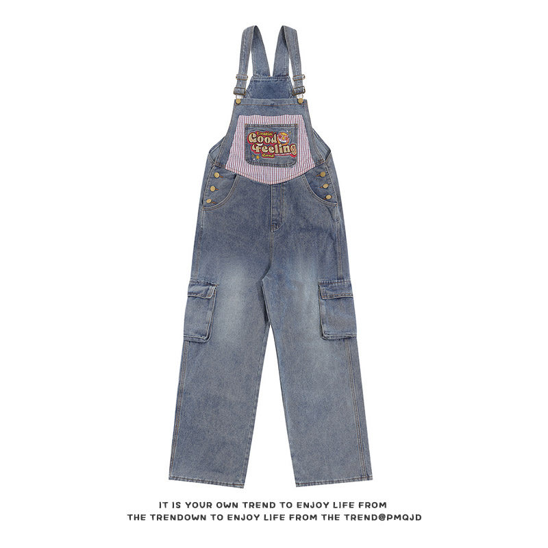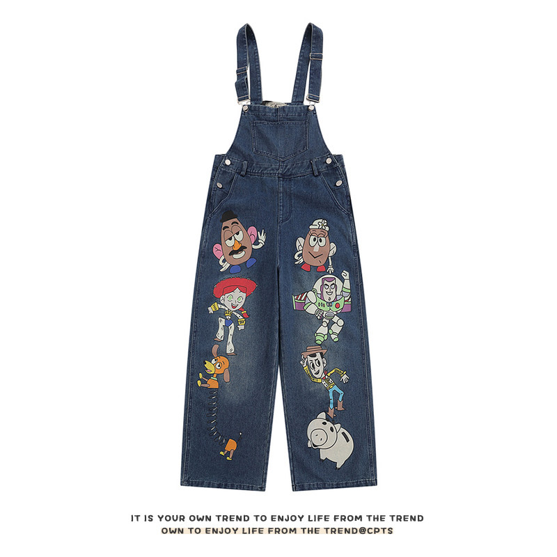 芃漫搞怪卡通牛仔背带裤美式街头嘻哈情侣长裤小众炸街个性连体裤