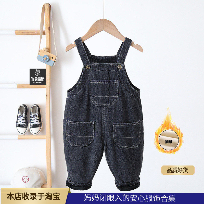 儿童加绒牛仔背带裤冬季新品宝宝舒适保暖连体裤婴幼儿0-4岁童裤