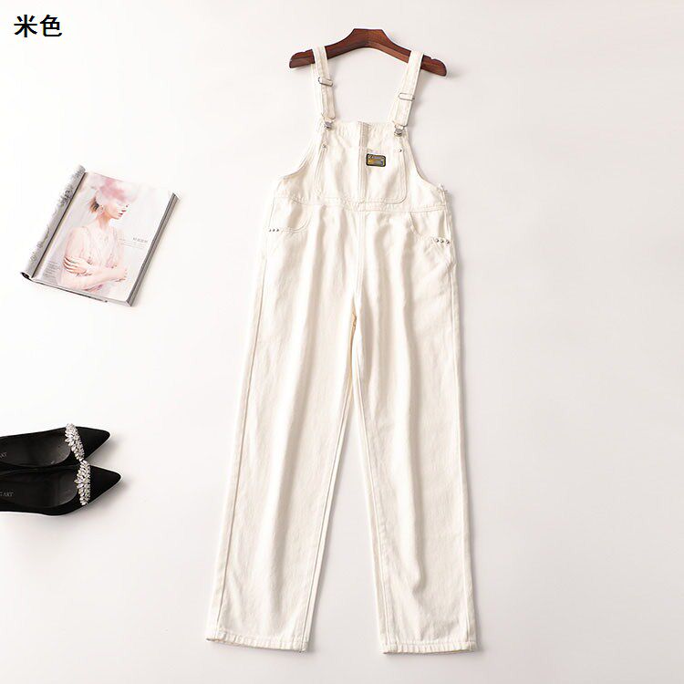 町秀6200白色慵懒休闲牛仔背带裤女韩国宽松减龄显瘦阔腿裤连体裤