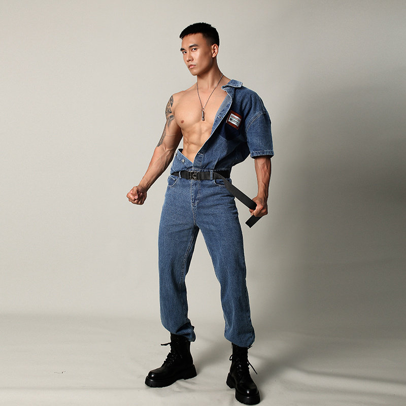 芃漫复古做旧渐变牛仔背带裤美式街头嘻哈情侣长裤男女炸街连体裤