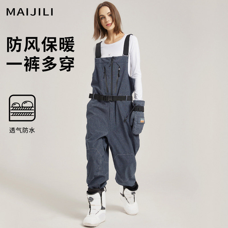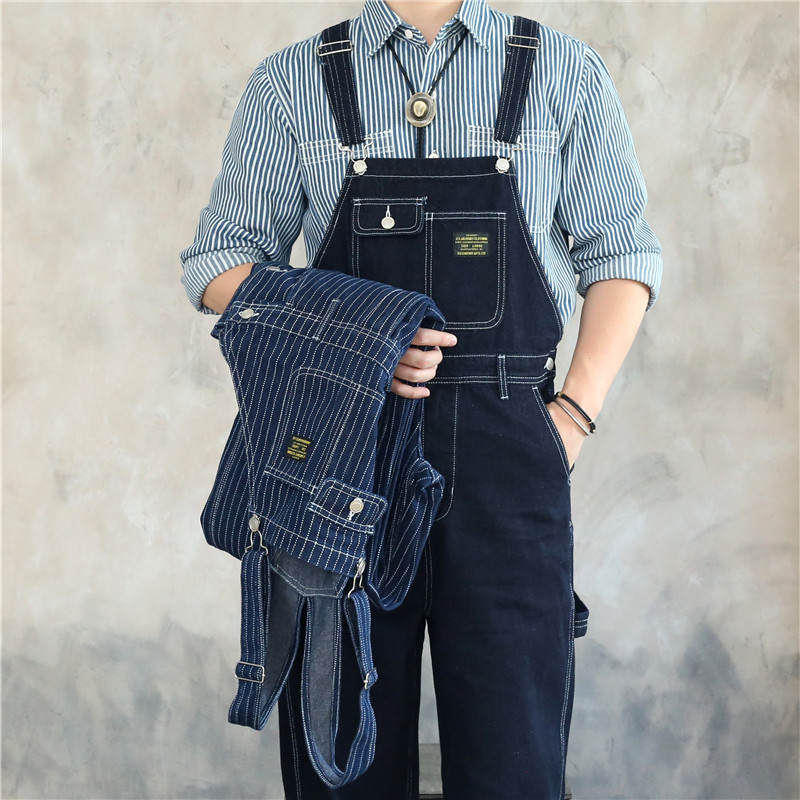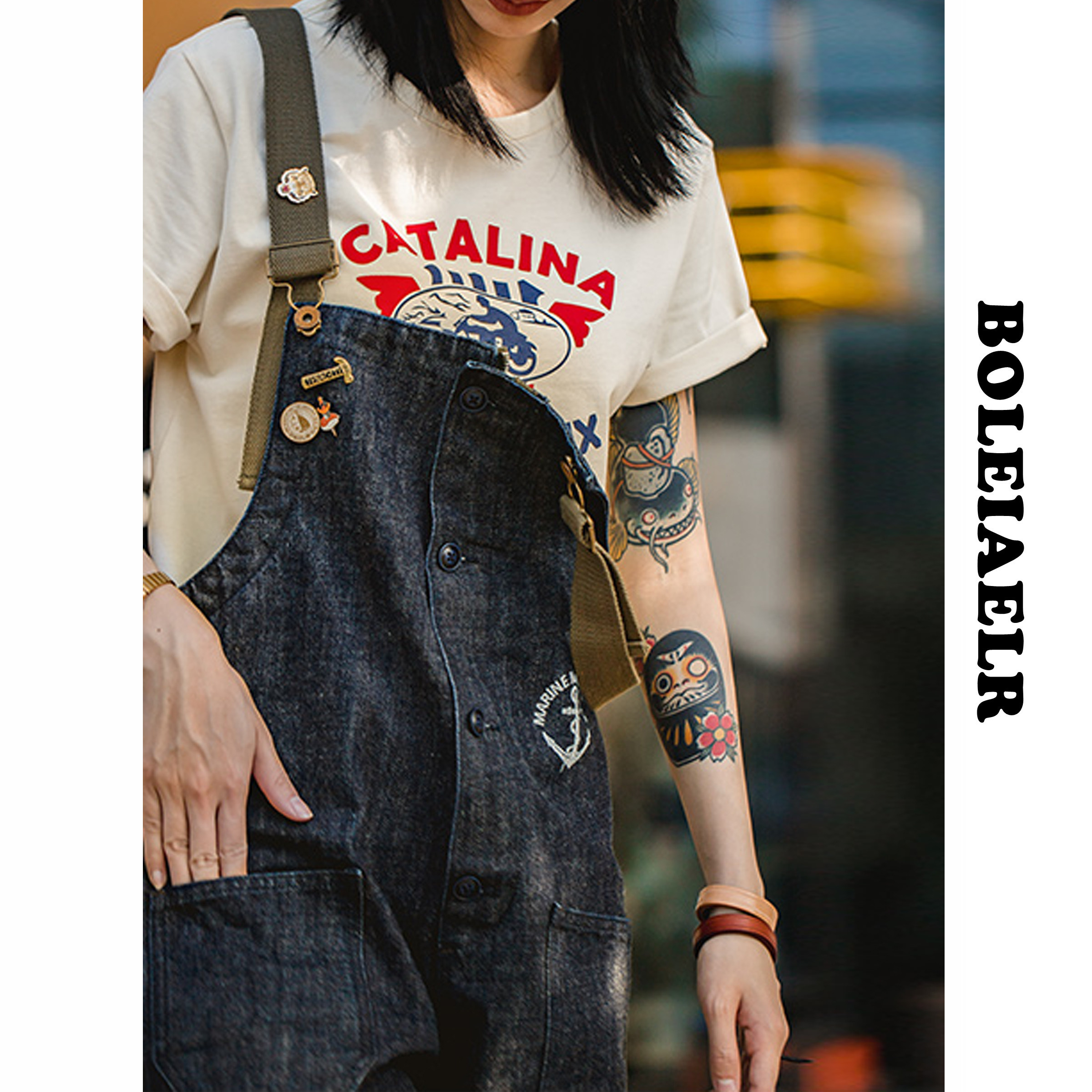 马登女装复古美式重磅连体工装裤休闲直筒阔腿宽松女士牛仔背带裤