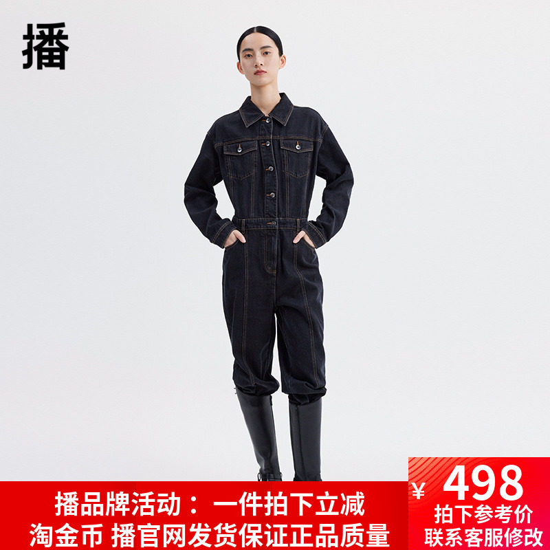 播2023春季新品直筒宽松休闲工装后背印花牛仔连体裤女DDQ2JD5077