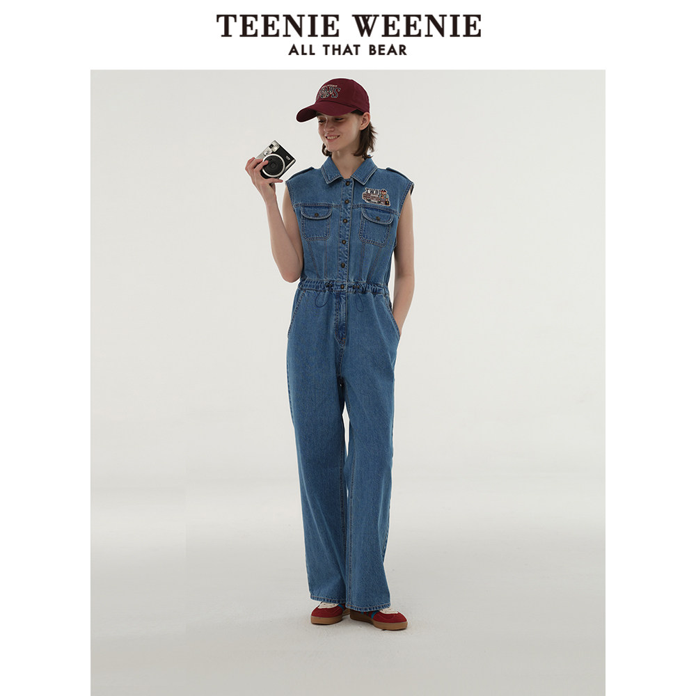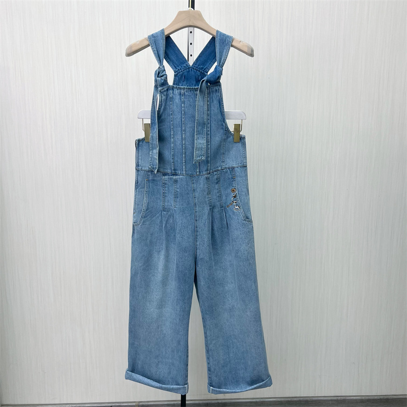 素萝原创×SOLO 夜月芦花 2023夏季新款宽松轻薄无袖牛仔连体短裤