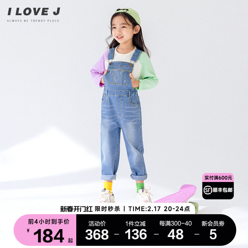 ILOVEJ童装高质牛仔背带裤儿童春装女童连体裤子百搭洋气/JUSPT01