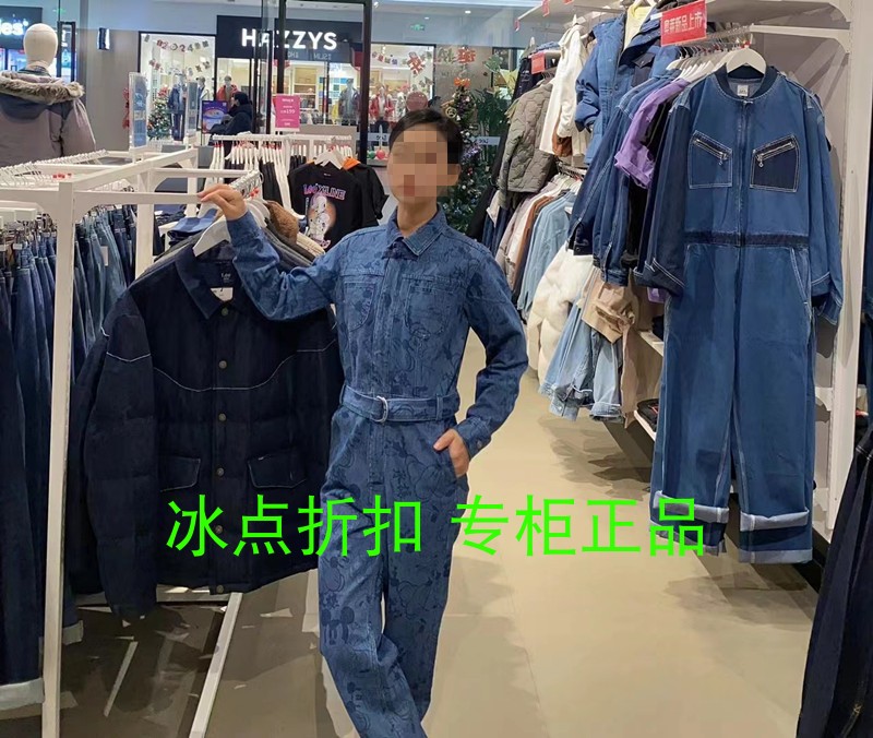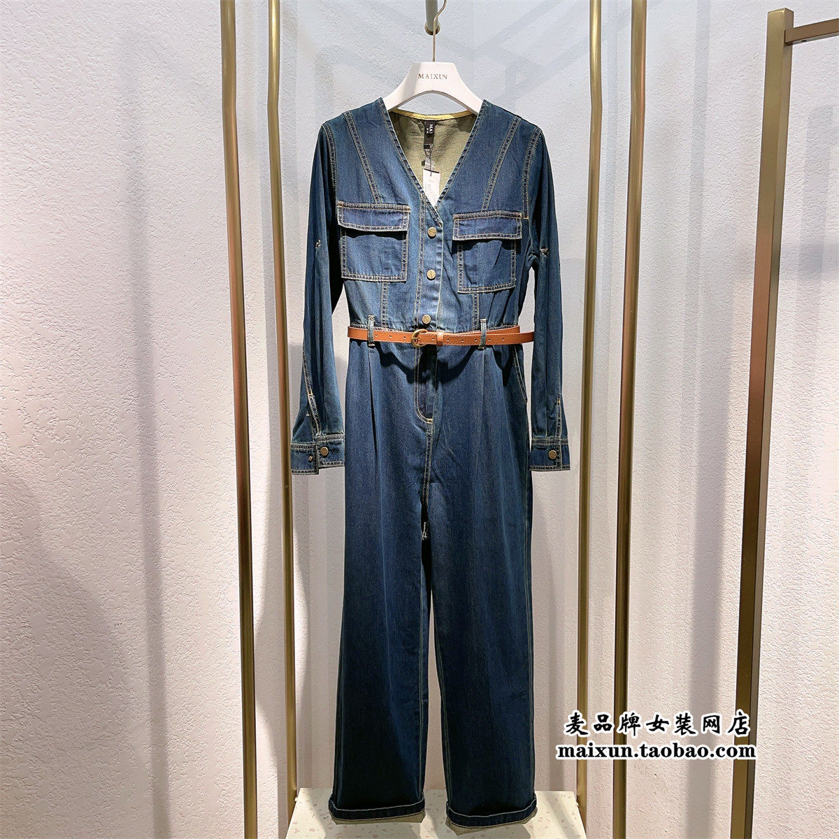 麦寻女装专柜正品春款KLABQ002收腰v领显瘦直筒牛仔连体裤百搭潮