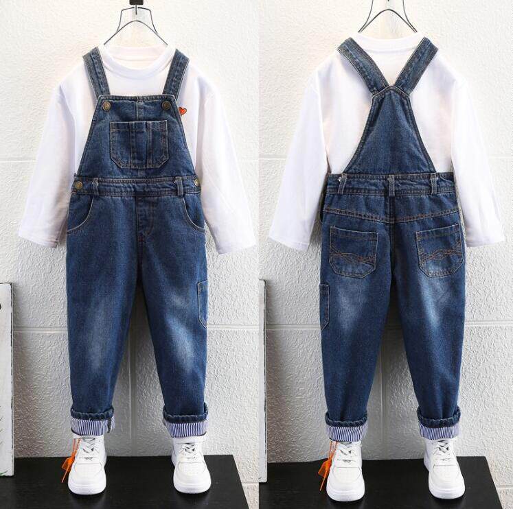 2023秋冬装儿童韩版加绒背带裤冬款宝宝牛仔长裤男女童连体裤子