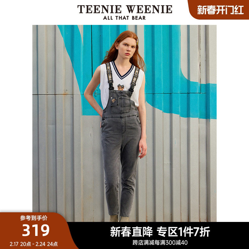 芃漫维尼熊刺绣牛仔背带裤日系复古学院风情侣长裤网红小众连体裤
