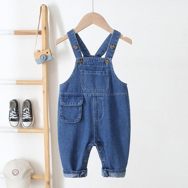 春秋新款儿童背带裤0-3岁婴幼儿按扣开裆牛仔背带裤男女童连体裤
