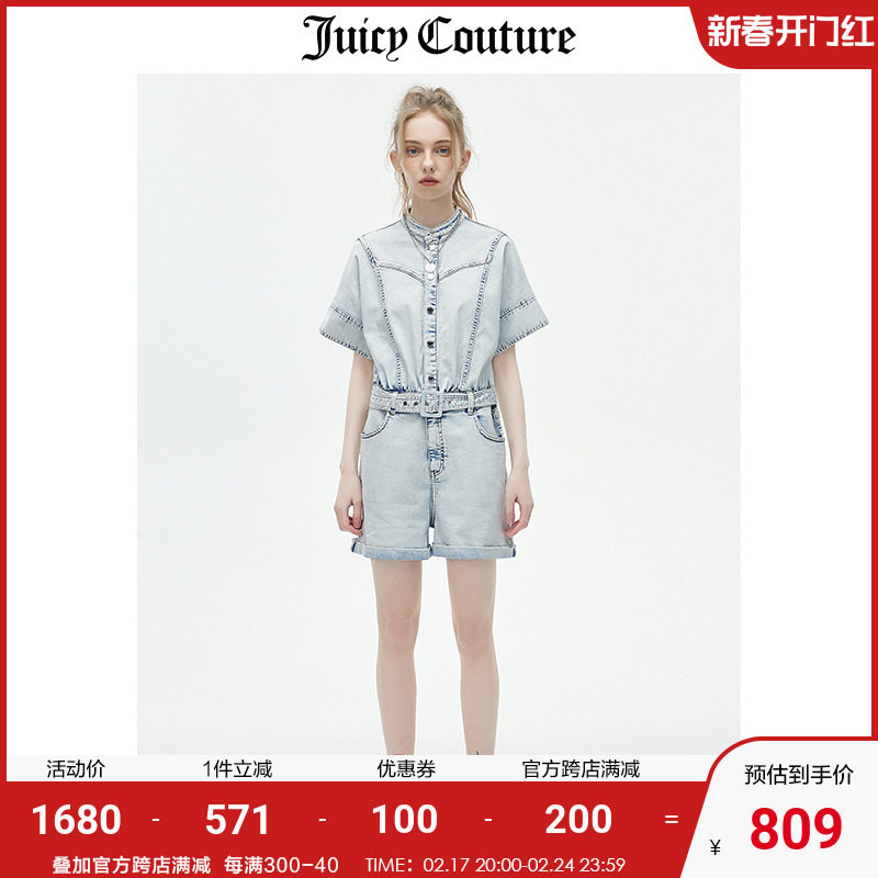 Juicy Couture橘滋连体衣女2023夏季新款复古连体牛仔衣短裤套装