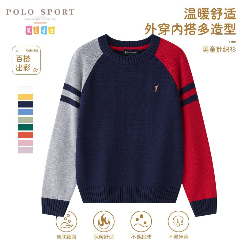 polosport童装男童针织衫2023新款秋冬儿童圆领套头毛衣品牌线衫