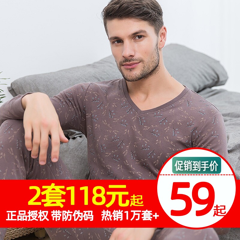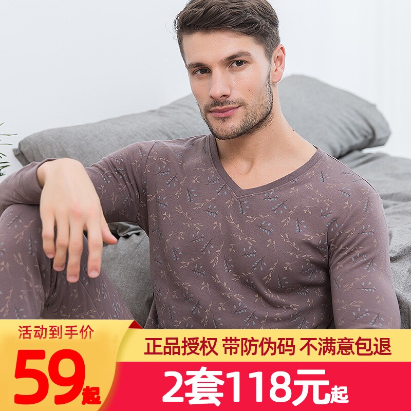 花系保暖内衣男薄款纯棉秋衣秋裤青年打底棉毛衫男士套装线衣线裤
