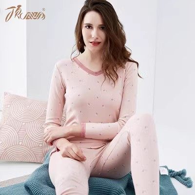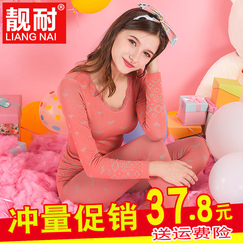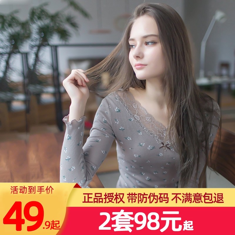 花系保暖内衣女薄款修身秋衣秋裤女士套装线衣线裤打底莱卡棉毛衫