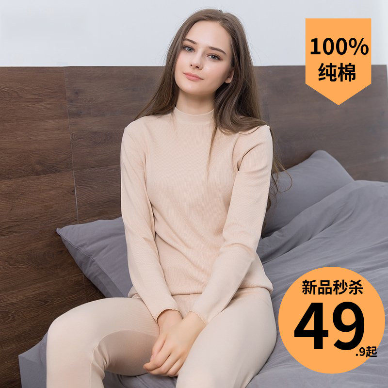 纯棉莱卡棉中厚款女低领圆领秋衣秋裤线衣线裤内衣套装莹柔