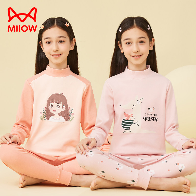 【半高领】秋衣秋裤女童纯棉儿童内衣套装大童全棉女孩线衣睡衣