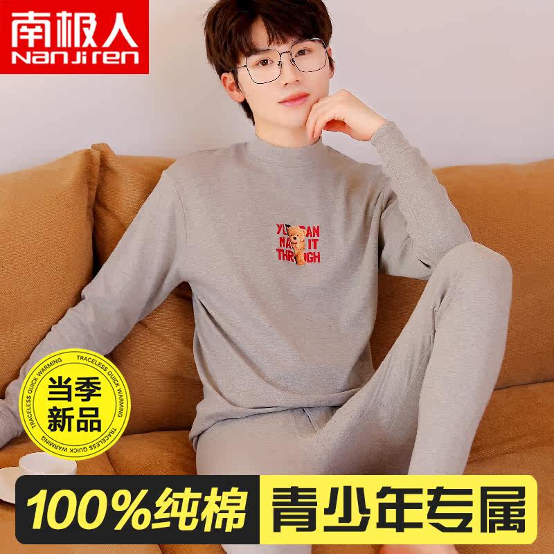 南极人保暖内衣男士纯棉秋衣秋裤套装全棉毛衫青少年薄款线衣秋冬