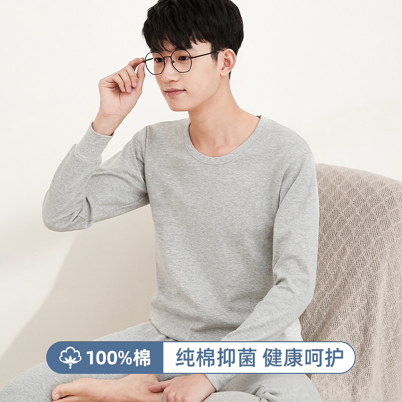 顶呱呱打底保暖内衣男套装纯棉秋衣秋裤男士薄款全棉毛衫线衣线裤