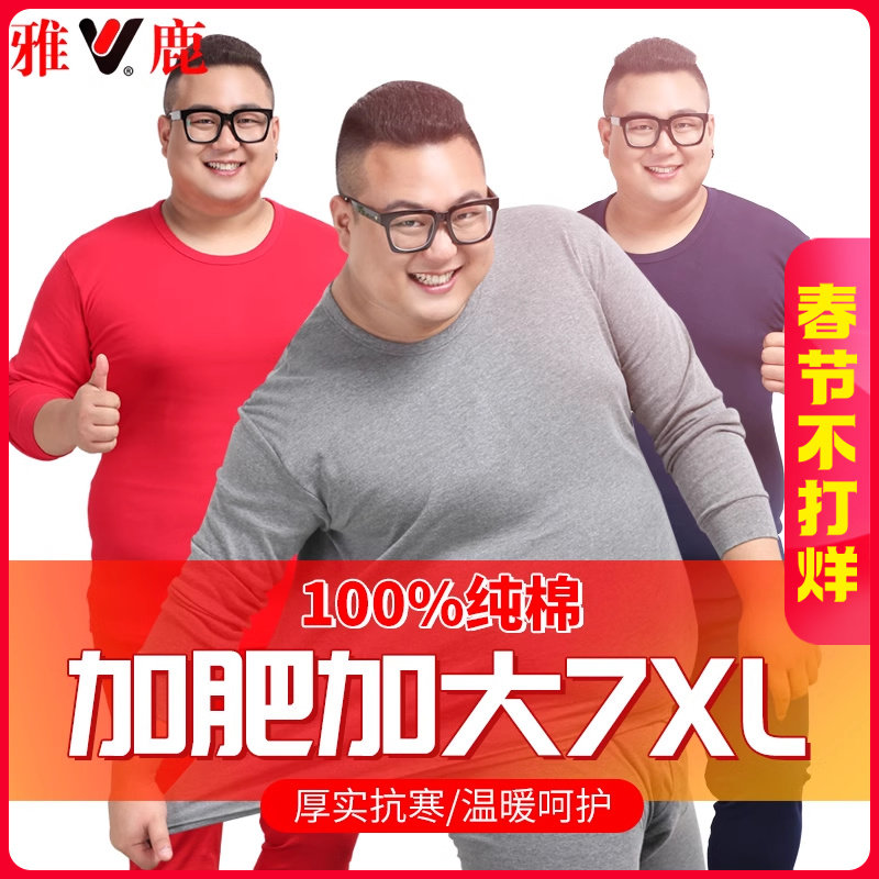 雅鹿特大码秋衣秋裤男纯棉套装加肥加大保暖内衣大号胖子线衣线裤