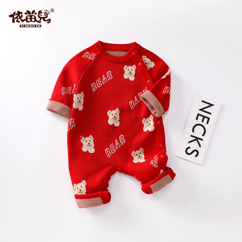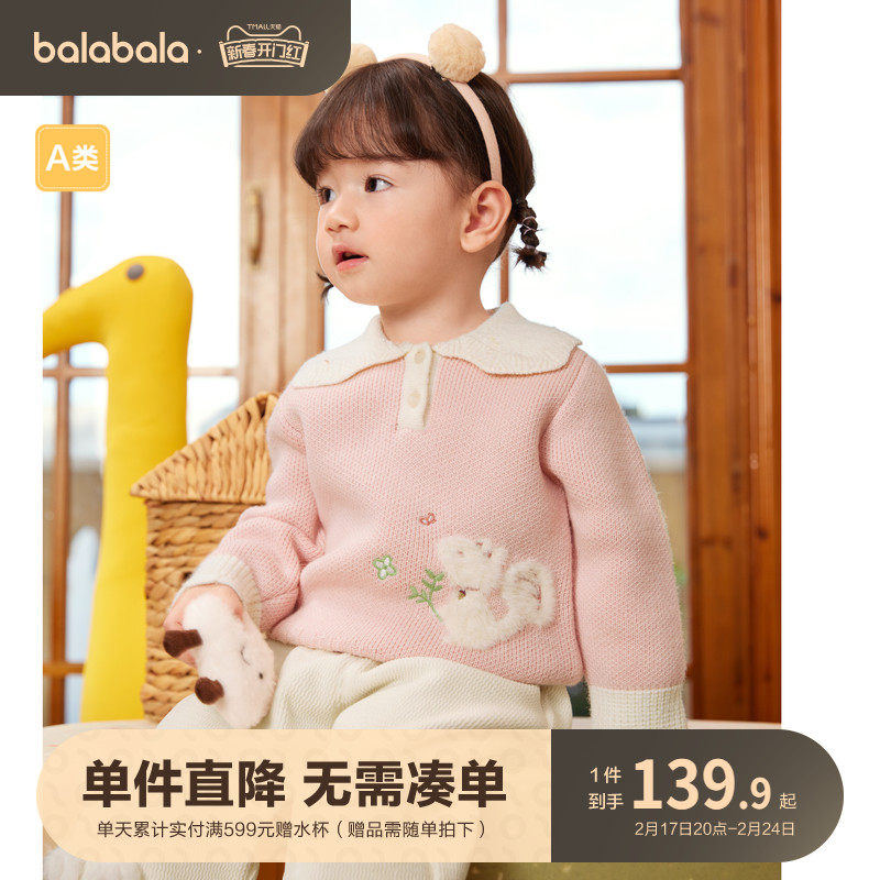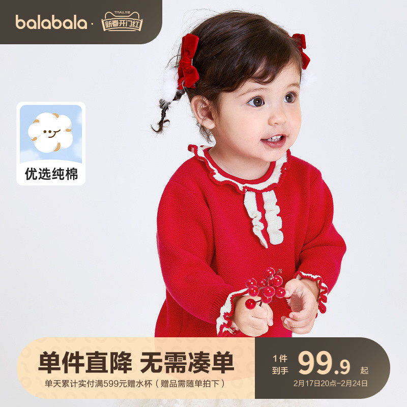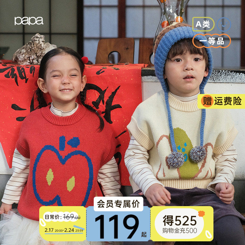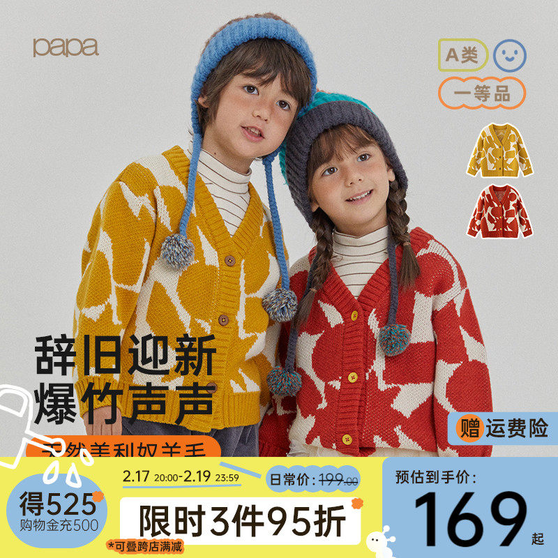 papa爬爬冬季儿童毛衣新年羊毛线衣男女宝宝针织开衫上衣洋气时髦