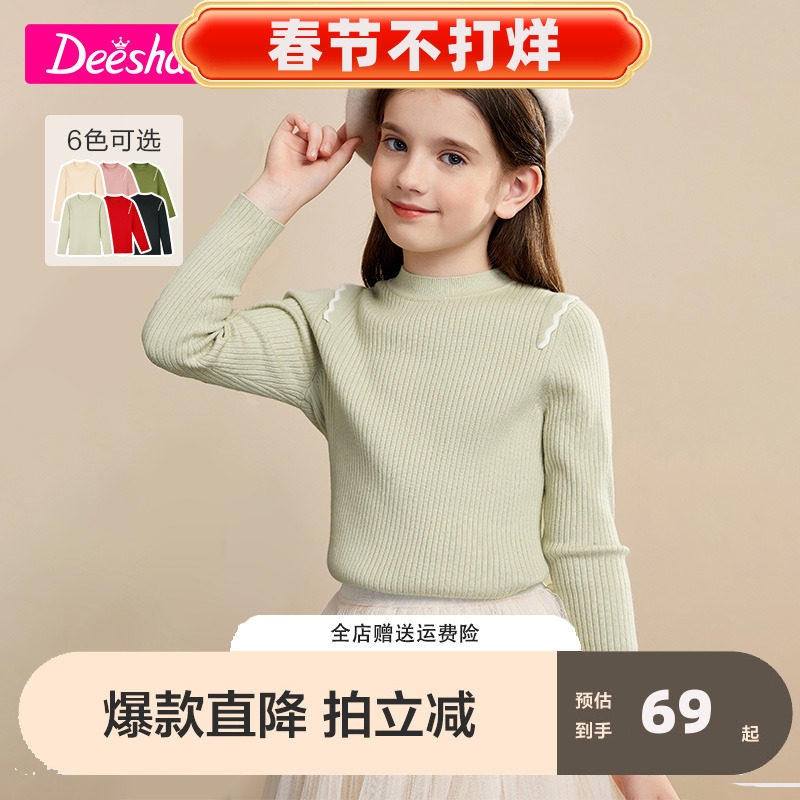 儿童打底毛衣春装女童套头针织衫半高领纯棉秋冬款中大童女孩线衣