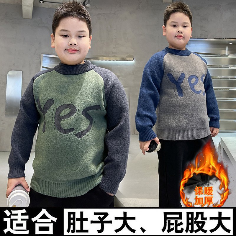 胖男童冬季毛衣加肥加大内穿针织衫中大童加厚保暖内搭打底衫线衣