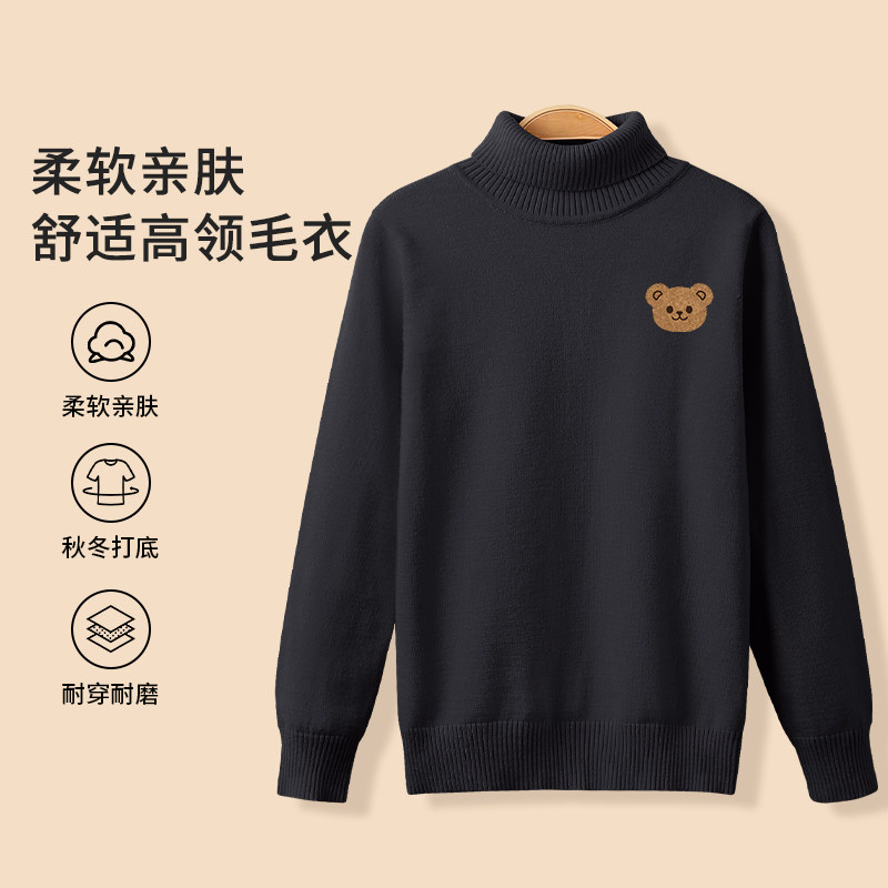 真维斯男童毛衣秋冬加绒半高领打底衫儿童2023新款内搭男大童线衣