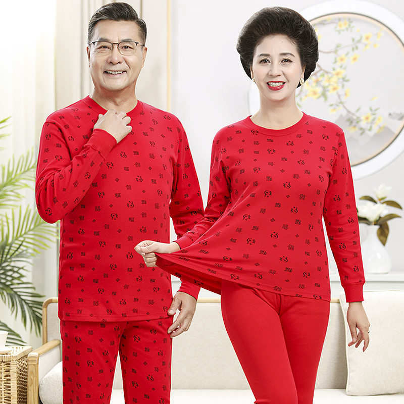 本命年男纯棉秋衣秋裤女红色全棉线衣线裤棉毛衫薄款保暖内衣套装