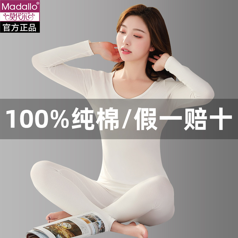 莫代尔保暖内衣女纯棉抗菌棉毛衫线衣裤打底衫冬季全棉秋衣裤套装