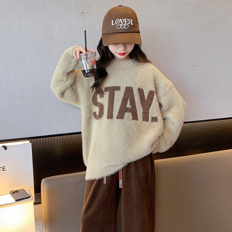 女童仿貂绒毛衣2023新款秋冬装中大童加厚针织衫洋气小女孩线衫潮