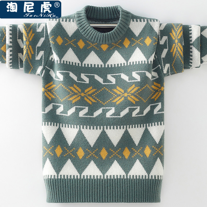 男童毛衣套头秋冬款儿童加绒加厚针织中大童圆领线衣洋气男孩保暖