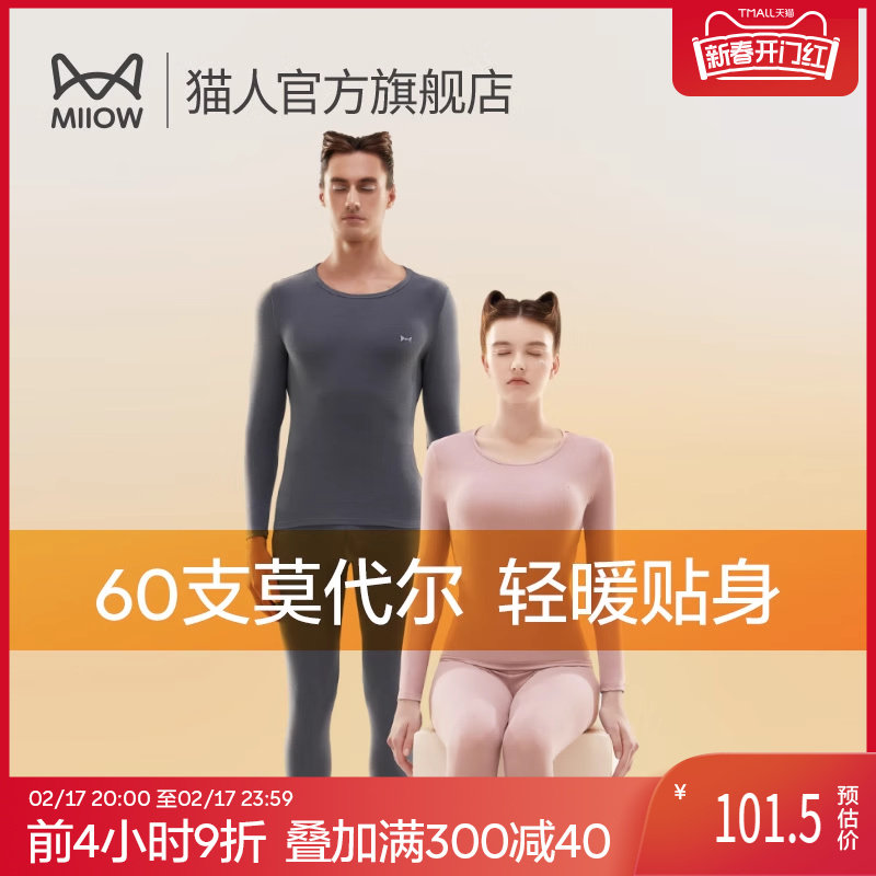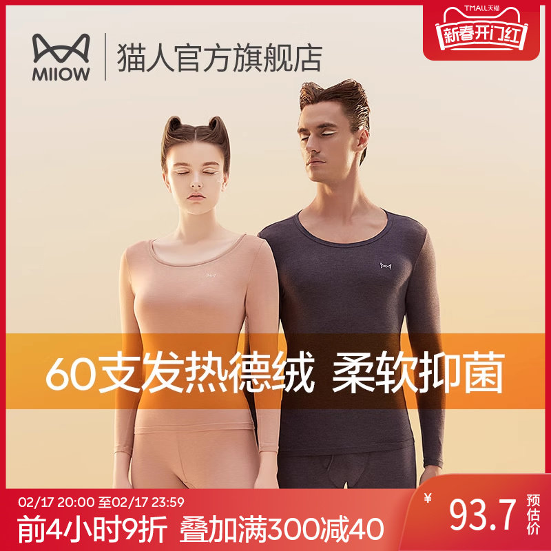 猫人莫代尔保暖内衣男士线衣线裤青少年保暖衣男秋衣秋裤女士套装