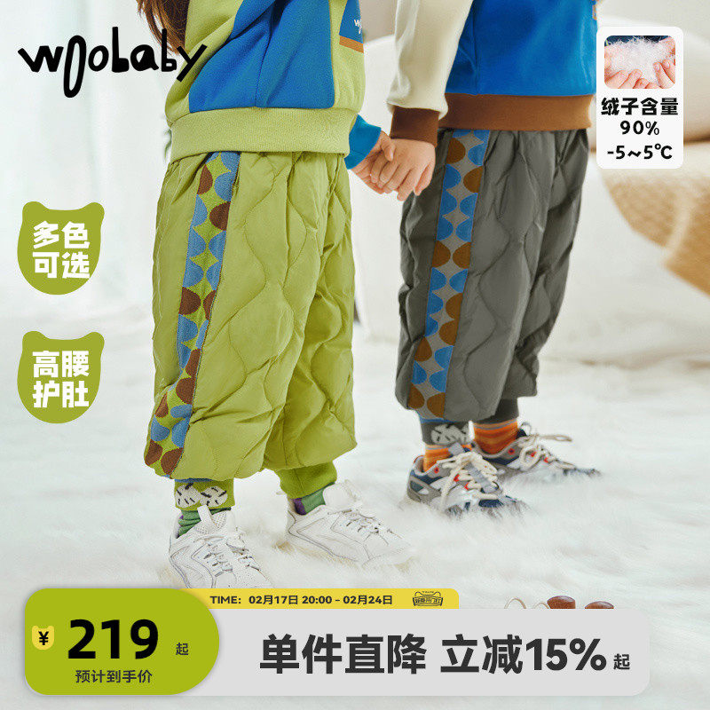 woobaby儿童羽绒裤高腰护肚男童女童外穿裤子宝宝户外保暖童装冬