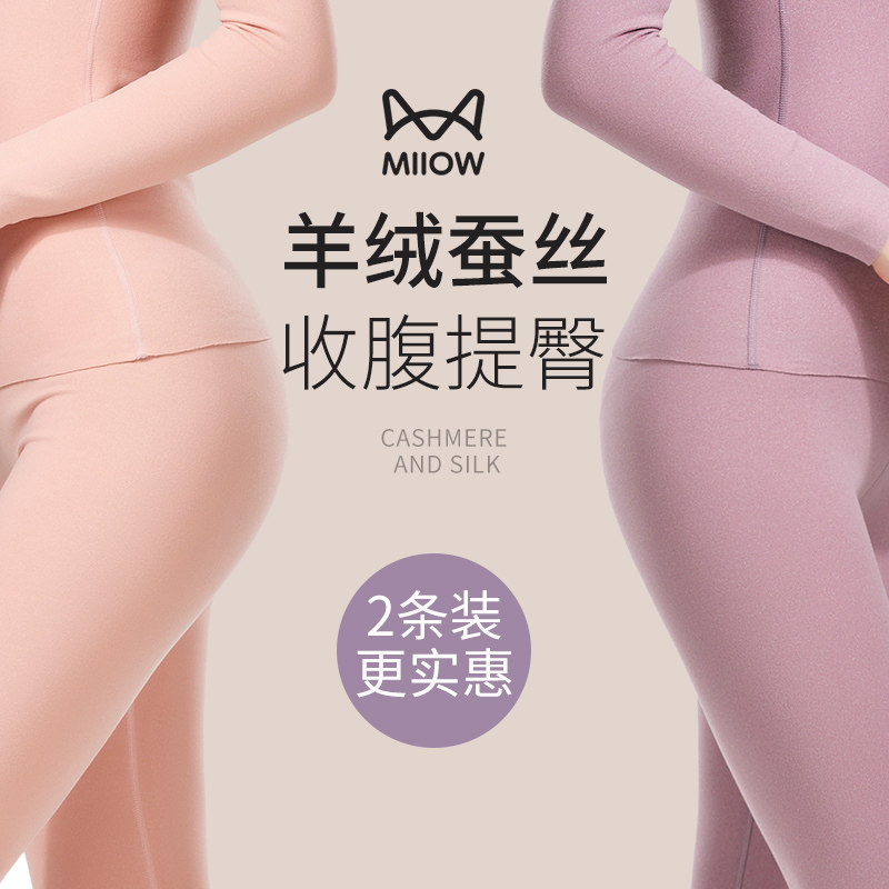猫人德绒秋裤女士保暖裤加厚加绒女高腰打底裤羊绒蚕丝秋冬季线裤