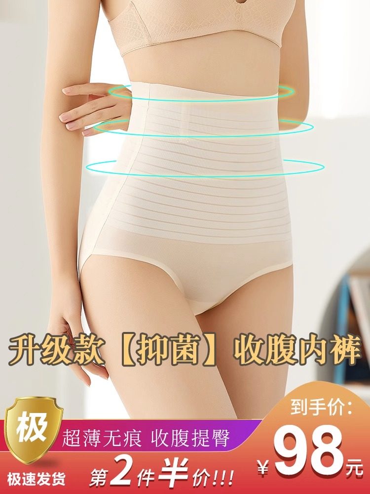 一秒收腹√薄款强力收小肚子高腰提臀收腹裤女内裤产后塑形三角