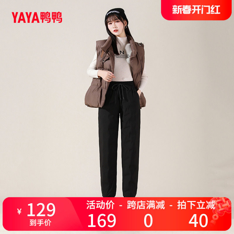 鸭鸭高腰羽绒裤女2023秋冬新款外穿修身显瘦加厚保暖裤子W