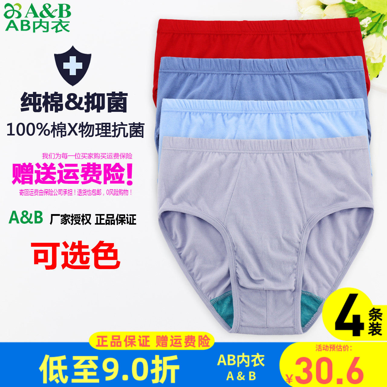 4条装 ab内裤男纯棉三角裤高腰抗菌短裤男宽松大码中老年裤头0922