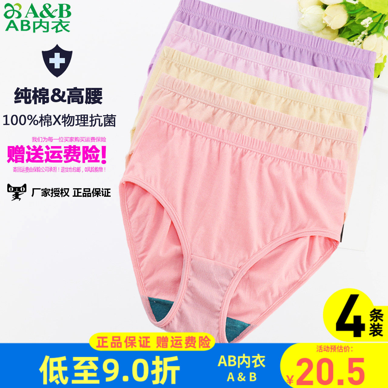 4条装 ab内裤女纯棉高腰抗菌短裤宽松大码中老年妈妈三角裤头2822