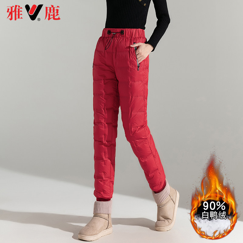 雅鹿加厚羽绒裤女外穿2023冬季新款显瘦高腰修身白鸭绒保暖棉裤子
