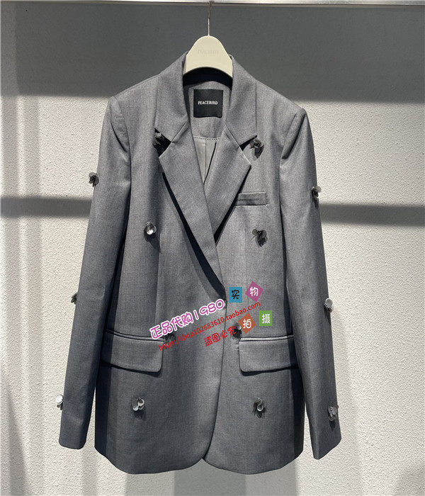 A1BAE1270太平鸟女装2024春专柜正品定位绣珠片西装A1BAE127085