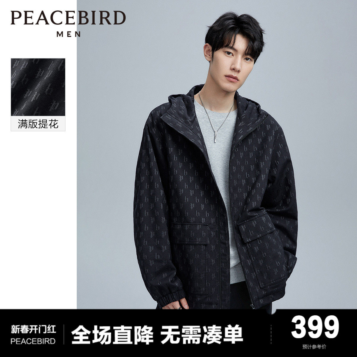 B1ACC4408 太平鸟男装2022冬季新款休闲百搭连帽暗格纹保暖羽绒服