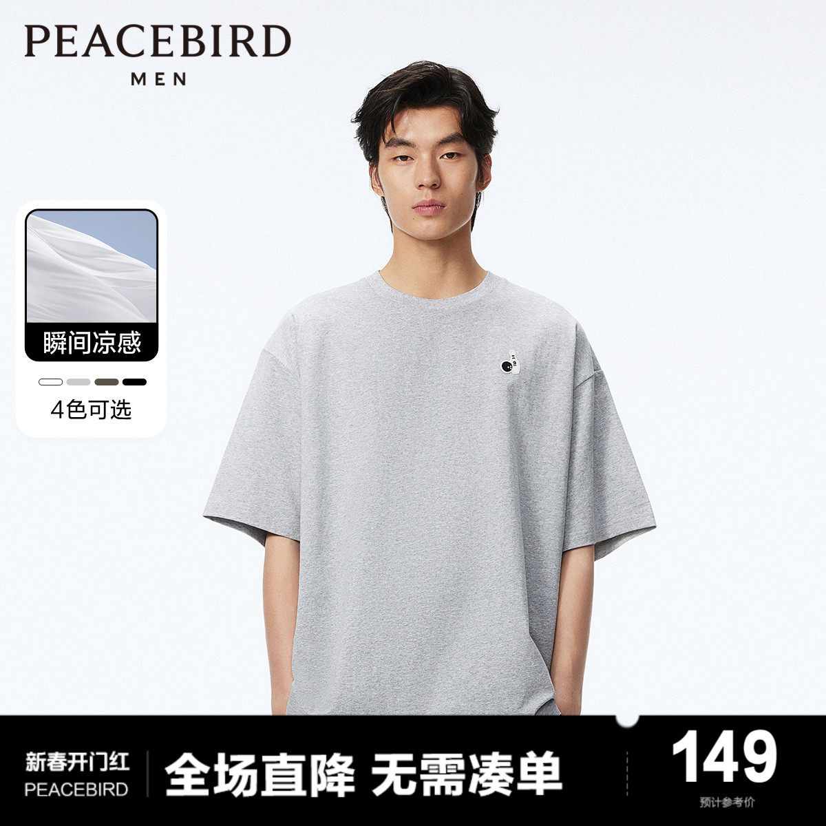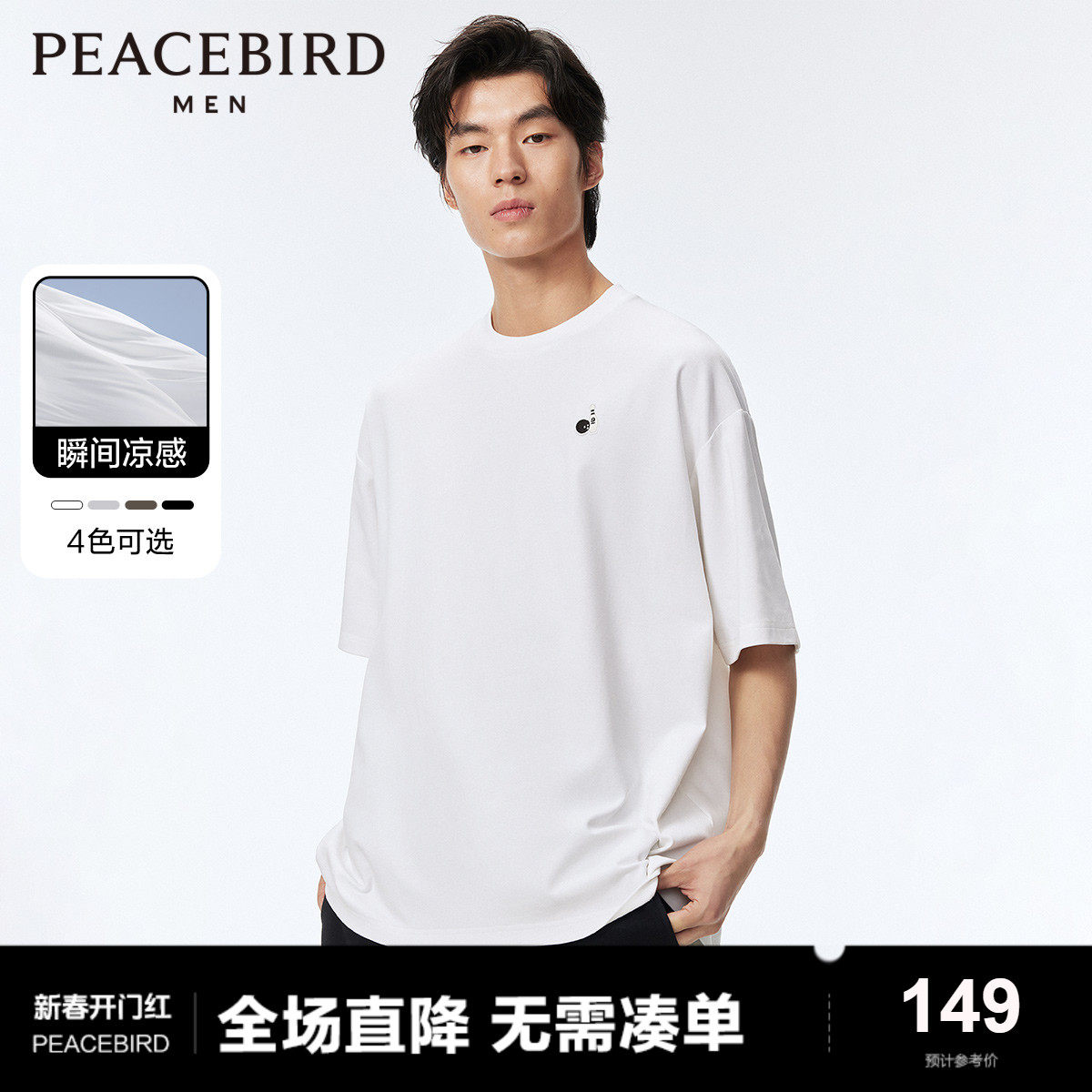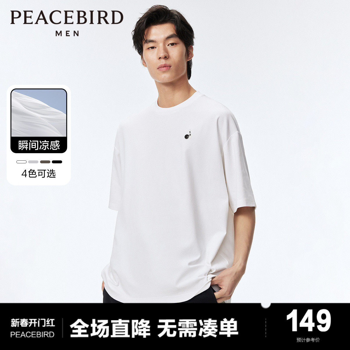 【凉感】太平鸟男装重磅短袖t恤2024年春新款宽松刺绣男生体恤潮