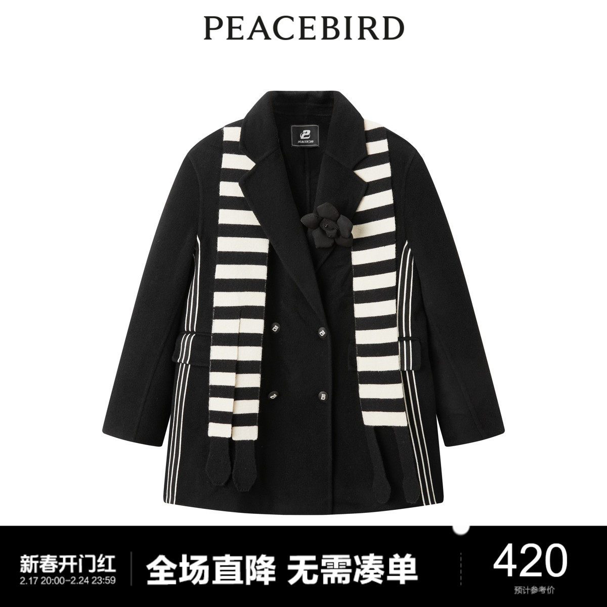 太平鸟年冬季新款趣味双面呢大衣A5AAC4E51奥莱