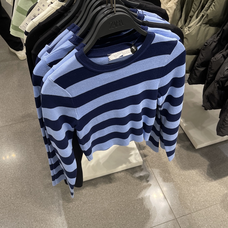 ZAR女装春装新款T恤短上衣圆领条纹针织衫3519202查罗3519202200