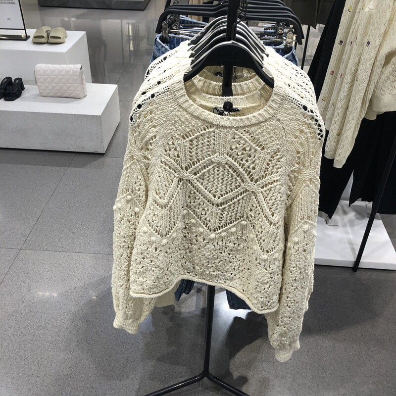 ZAR女装早秋新款提花镂空针织衫宽松卫衣4331119查罗04331119712